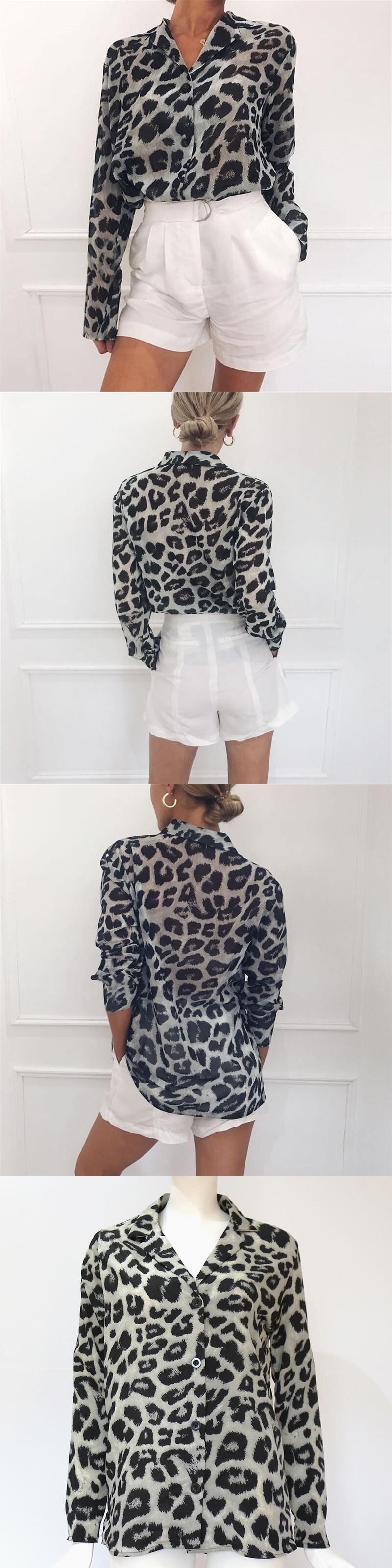 ベラ哲学シフォン長袖セクシーなヒョウ柄ブラウスターンダウン襟女性オフィスシャツチュニックトップスプラスサイズ ロング 大きめサイズ 会社 学校 通勤や通学にも bel41434768178 | aliel