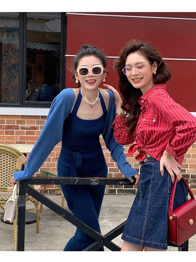 シックなニット夏秋タンクボディコン DressTops ソリッド Traf ニットノースリーブ女性ドレススーツセット サマー 夏物 オータム 秋物 ソリッドカラー bel144866532 | aliel