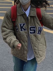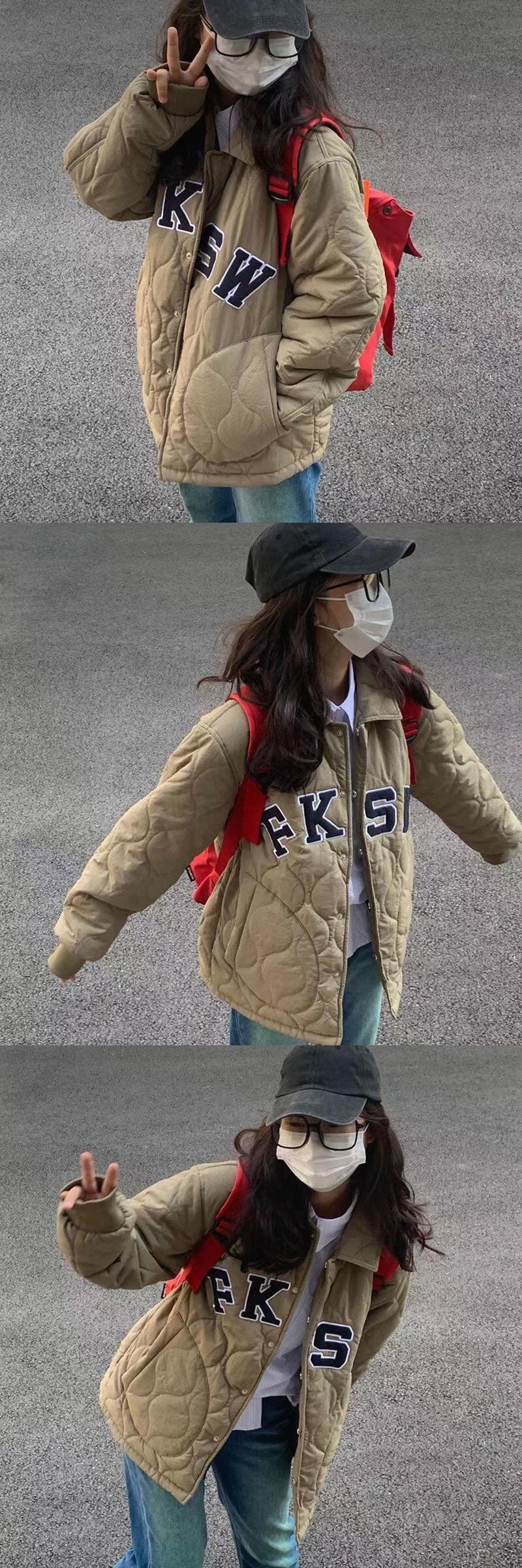 アメリカのレトロな冬のアルファベット刺繍ラペル菱形キルティング厚いコートの綿の服の学生の女性の潮 コットン ウィンター 冬物 bel93045529229
