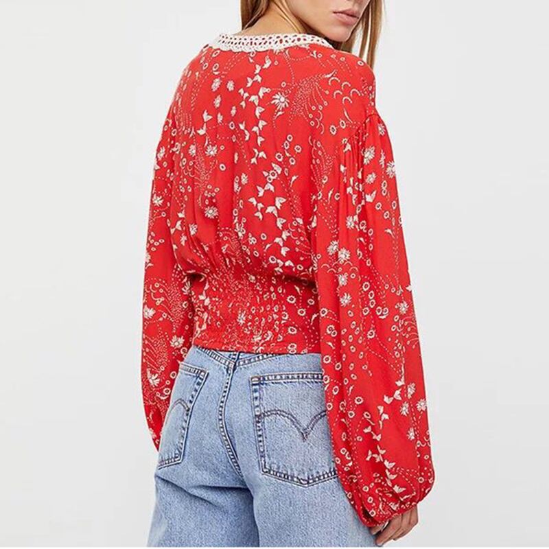 ベラ哲学夏ヴィンテージ甘い v ネック女性プリント ブラウス カジュアル スリム女性シャツ ハイストリート長袖レディース blusas ロング 大人ガーリー スウィート キュート サマー 夏物 Vネック ビンテージ bel18385981999 | aliel