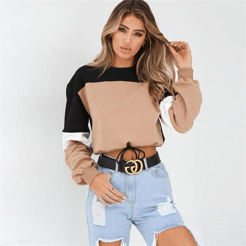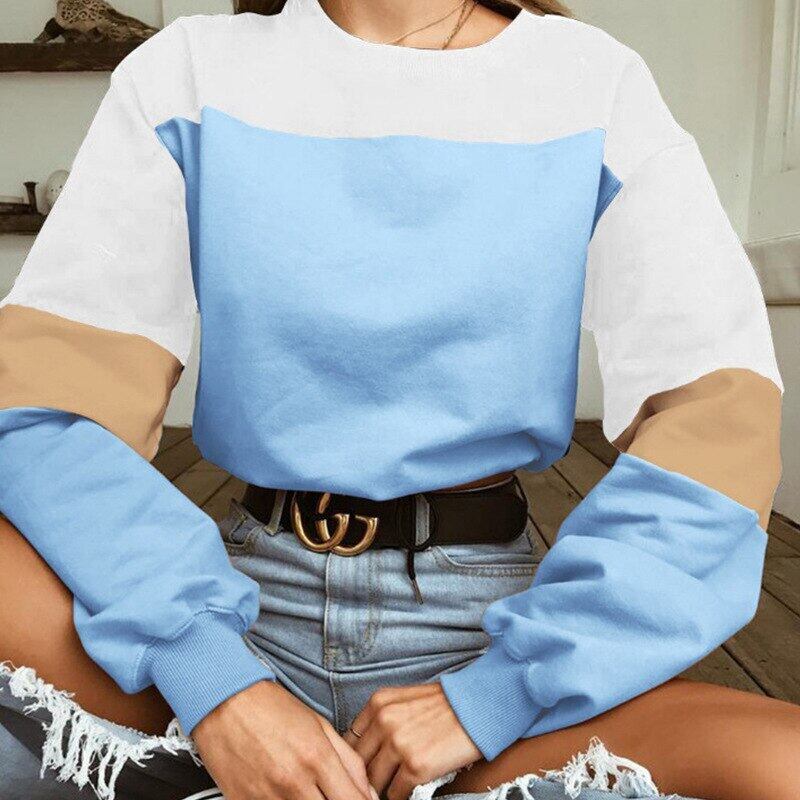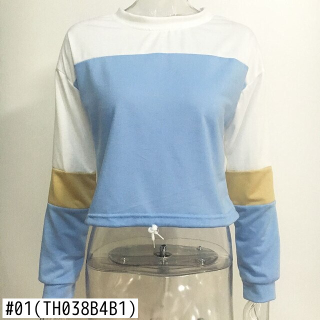 ベラ哲学 2019 春長袖パッチワーク女性 Tシャツ O ネックショートブロックリブシャツ ロング スプリング 春物 Oネック bel88830277096