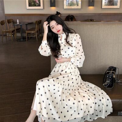 Bella Philosophy 女性春長袖シフォンマキシドレスポルカドット自由奔放に生きるドレスレディビーチドレス Vestido ロング スプリング 春物 bel80121672370 | aliel