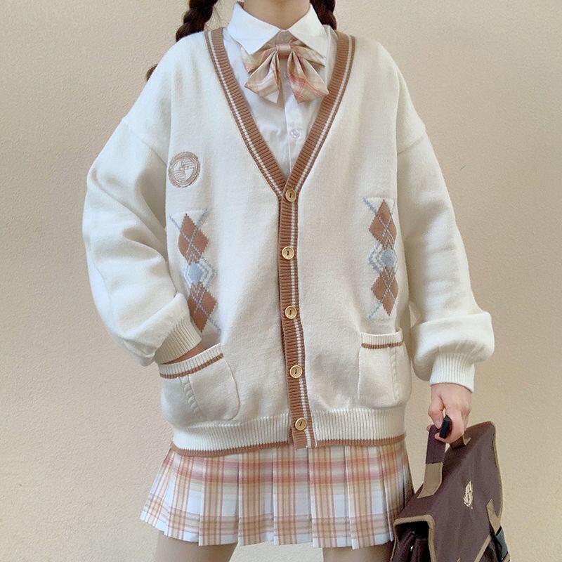 秋の女の子 ese 学生セーターカーディガン女性プレッピースタイルポケットニットトップスーツ甘い原宿 3 個セット 大人ガーリー スウィート キュート カジュアル かわいい オータム 秋物 bel73087844531 | aliel