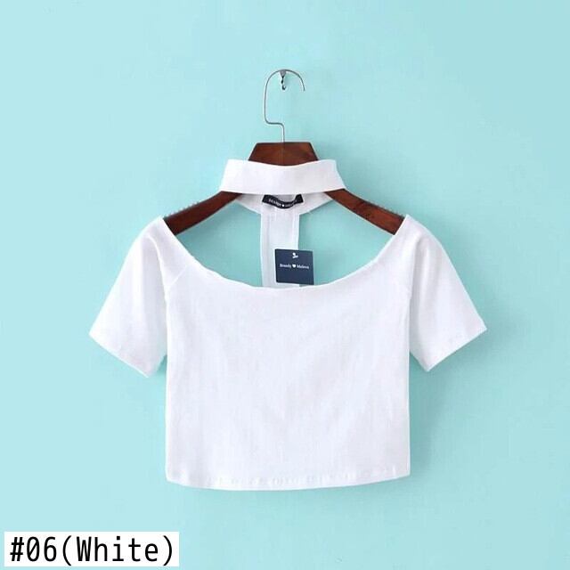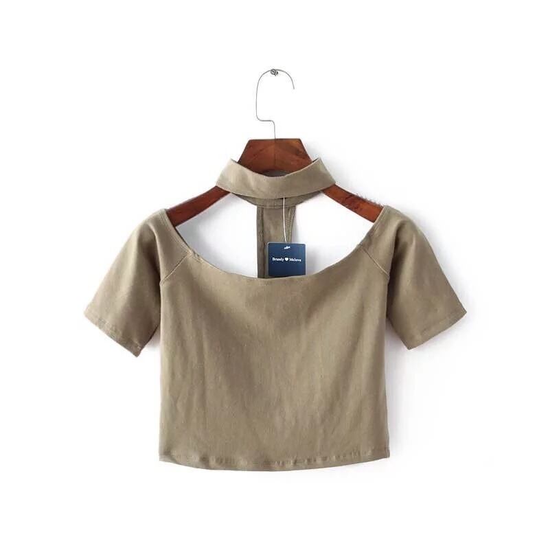 ベラ哲学 2018 夏の新しい女性のセクシーなハイネックホルターショート Tシャツクロップトップ黒ピンク白グレー赤カーキ ホワイト レッド ブラック サマー 夏物 bel93484246667 | aliel