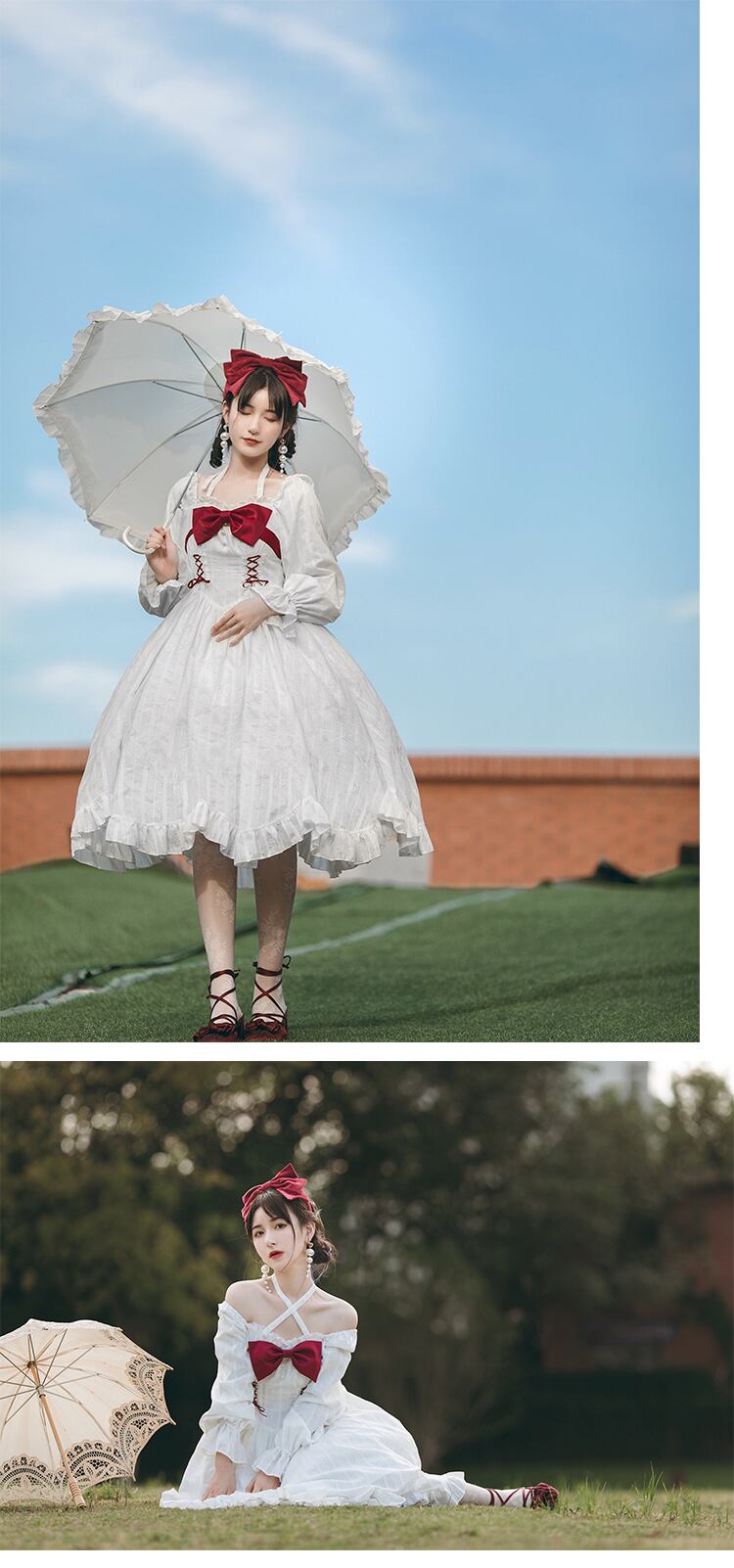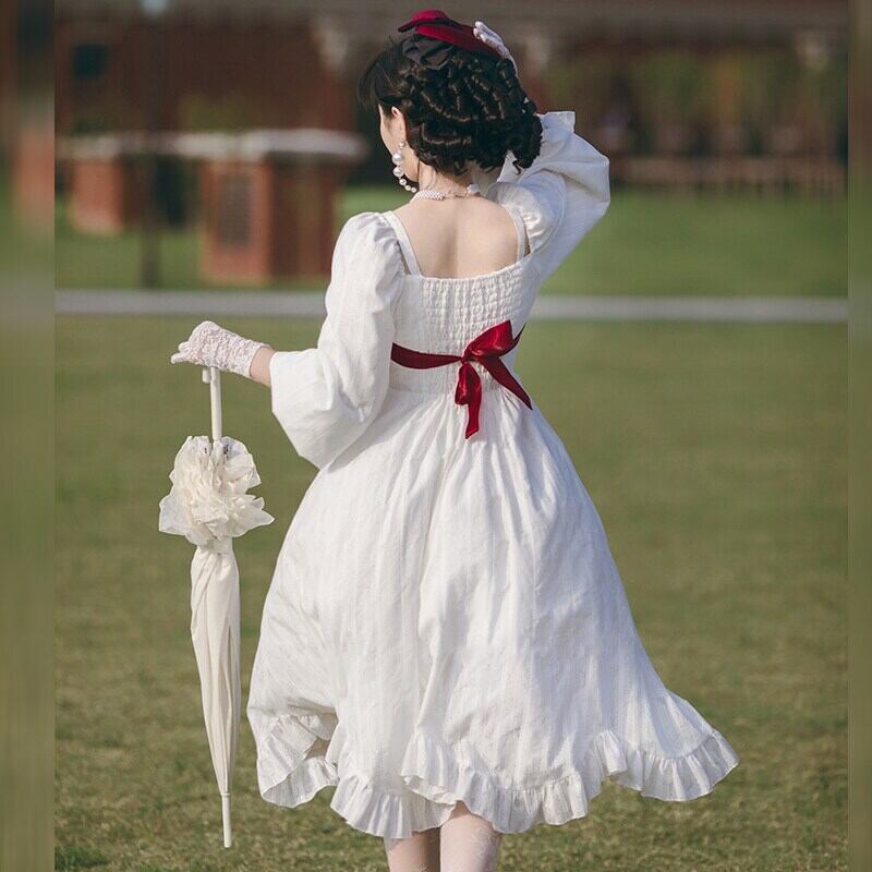 スウィートロリータドレスヴィンテージレースちょう結びハイウエストビクトリア朝のドレスかわいいロリコスプレ винтажная одежда лолита ハイウェスト リボン 大人ガーリー キュート カジュアル ビンテージ bel37829370128 | aliel
