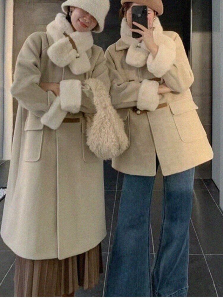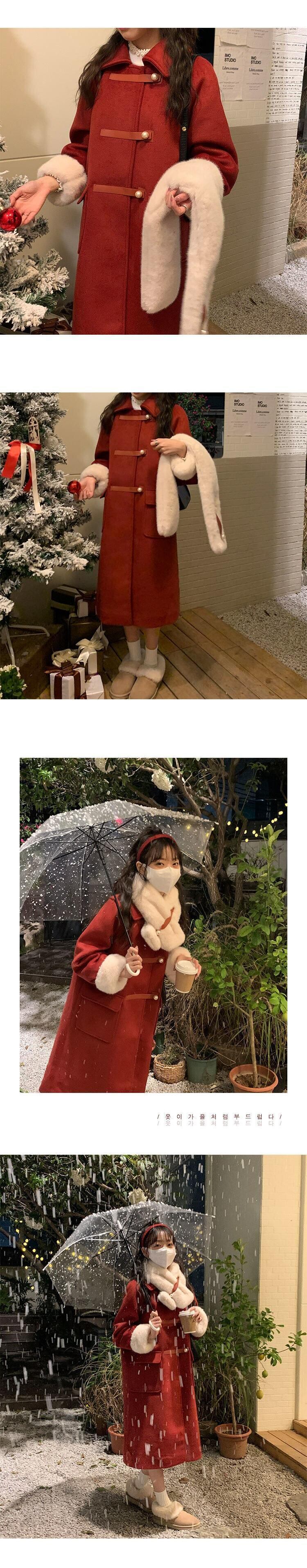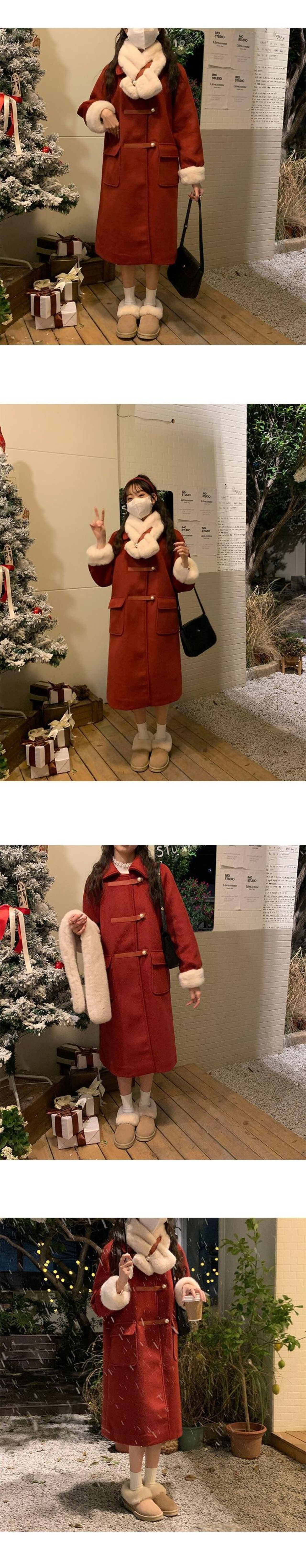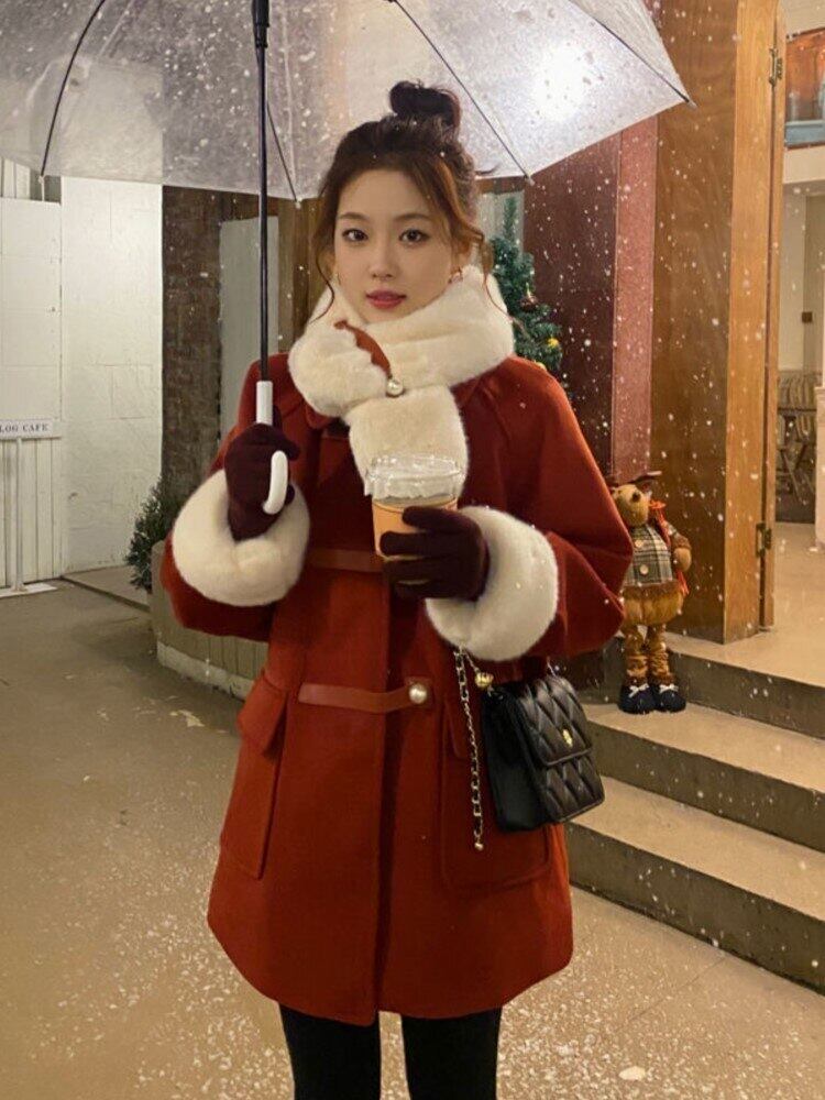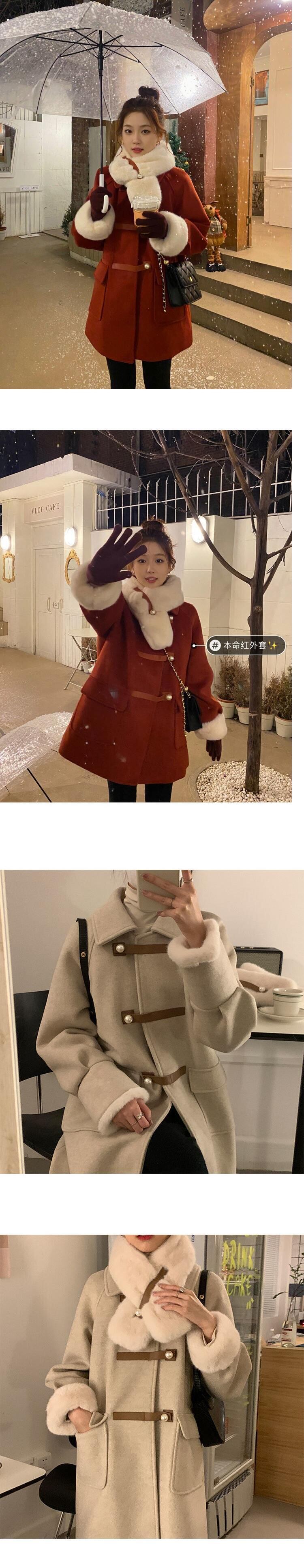 女性用冬用コート オーバーコート フェイクファー スリーブ 無地 大きなポケット 厚手 暖かいジャケット レッド ストリートウェア ウィンター 冬物 ソリッドカラー bel83294015705 | aliel
