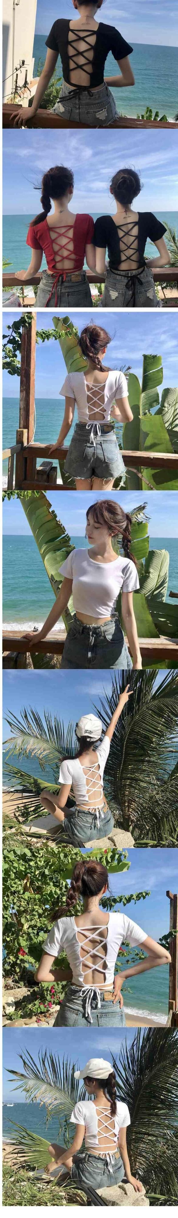 中空アウトレースアップセクシーな tシャツの女性のファッション半袖 tシャツ夏クロップトップ女性 o ネックトップス黒 tシャツ ショート ブラック ハーフスリーブ サマー 夏物 Oネック bel91902697569 | aliel