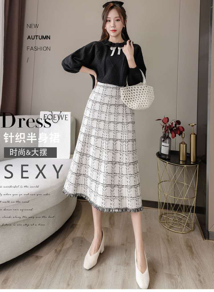 チェック ニット レディース 秋冬 Aライン ニット スカート テル ウール ロング スカート レディース スカート ファルダス ペチコート スカート マーメイド オータム 秋物 ウィンター 冬物 bel31199447189 | aliel
