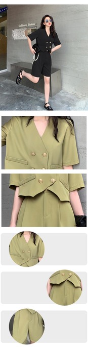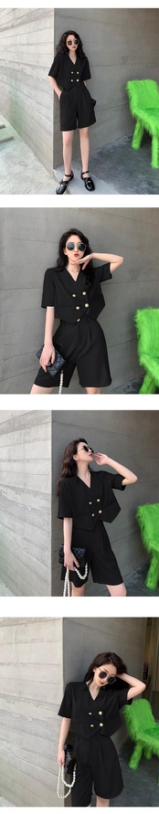 夏の女性のオフィスセットツーピースブレザースーツ半袖カーディガンブレザー & ショーツ女性固体ブレザーセット ショート ハーフスリーブ サマー 夏物 ブルマー ソリッドカラー 会社 学校 通勤や通学にも bel29938716740 | aliel