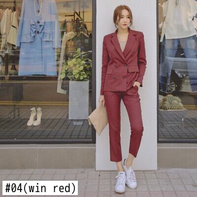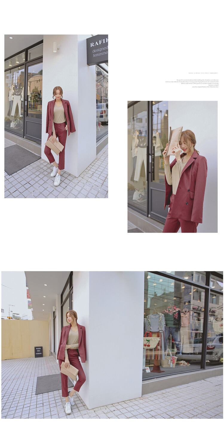Bella Philosophy 2019秋 ストライプ ダブルブレスト ブレザー スーツ オフィスレディ エレガント 4色 パンツスーツ 2点セット オータム 秋物 会社 学校 通勤や通学にも bel21830940732 | aliel