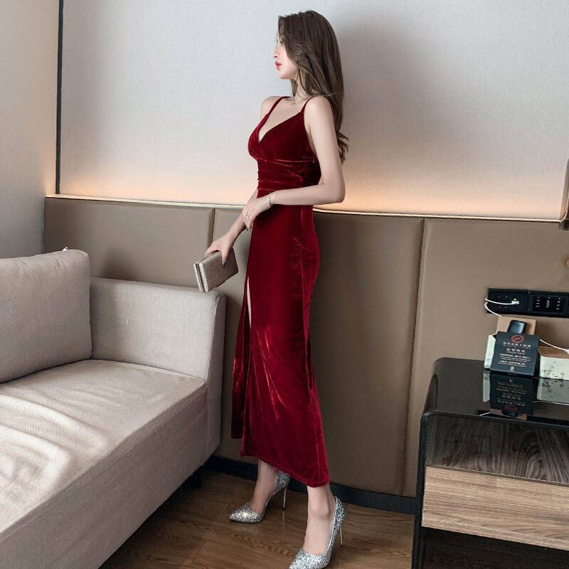 ベラ哲学 2020 女性春ソリッドスパゲッティストラップドレス女性のベルベットのウエストパーティードレスセクシーな V ネック Vestido スプリング 春物 Vネック ソリッドカラー bel60412060799 | aliel