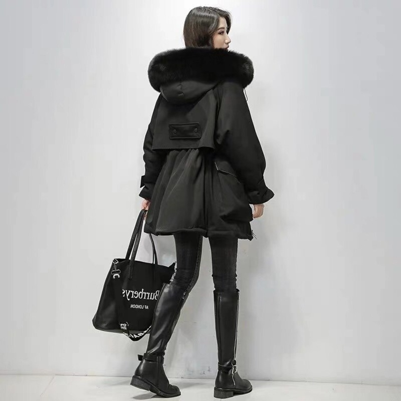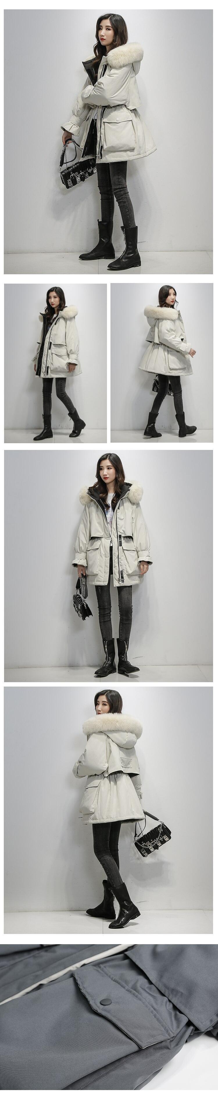 大自然キツネの毛皮フード付き冬のジャケットの女性 90% ホワイトダックダウン厚いパーカー暖かいサッシタイアップスノーコート ウィンター 冬物 ナチュラル 天然 bel72952889396