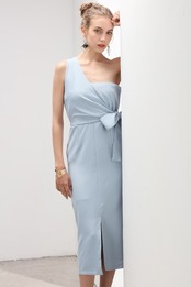 Bella Philosophy 夏 ワンオフ ショルダー タイウエスト スリム ボディコン パーティー レディース ドレス ペンシルドレス オフィスレディ ミディドレス サマー 夏物 オフショルダー 会社 学校 通勤や通学にも bel55874237021 | aliel