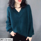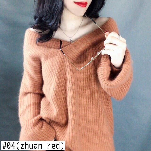 秋冬女性 V ネックソリッドセータールーズニットプルオーバー長袖プラスサイズトップス ロング 大きめサイズ オータム 秋物 ウィンター 冬物 Vネック ソリッドカラー bel59823424621 | aliel