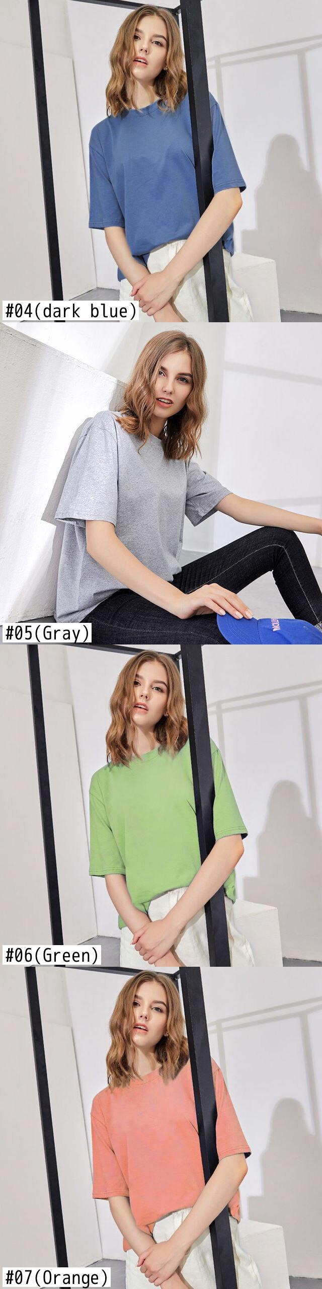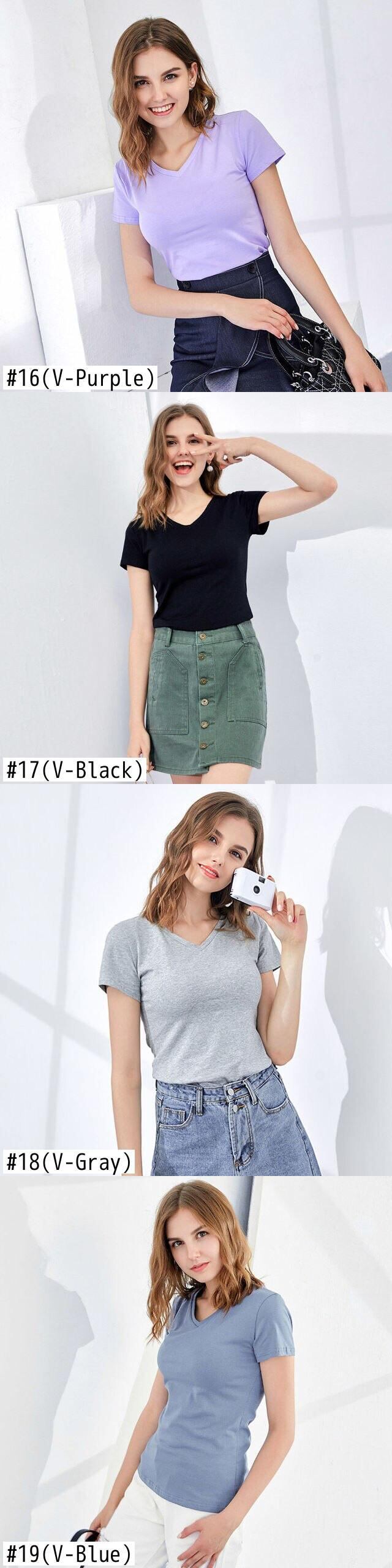 Tシャツ 11 色の基本的な純綿 Tシャツ女性 V ネック原宿夏トップヒップスター白 Tシャツ S-L トップス ホワイト コットン かわいい サマー 夏物 Vネック ピュア bel61267268644 | aliel