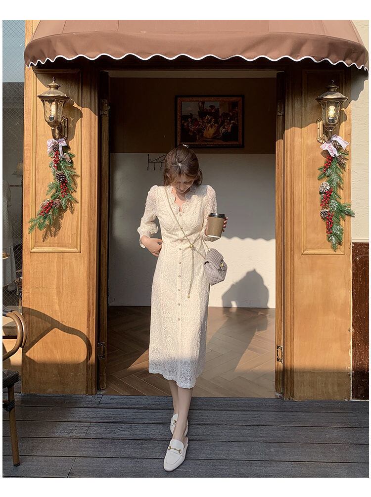 女性の V ネックドレス春ワンピースイブニングレディパーティー妖精ドレス 2022 レース長袖夏マキシドレス ロング スプリング 春物 サマー 夏物 Vネック bel51672732088 | aliel