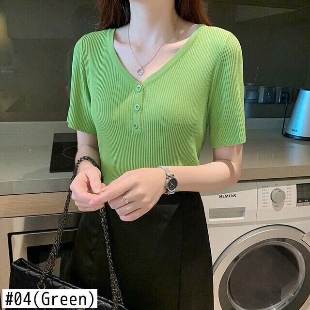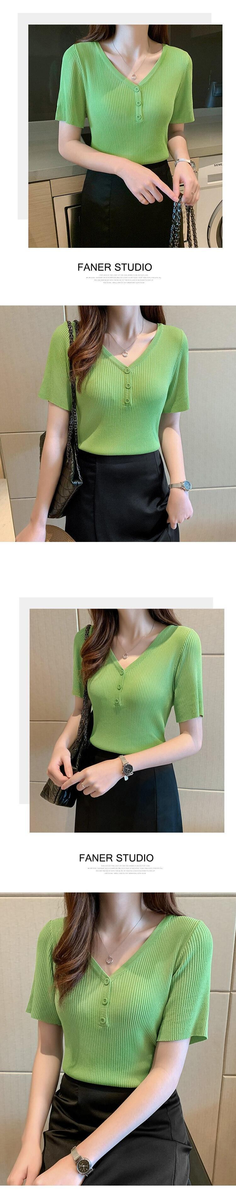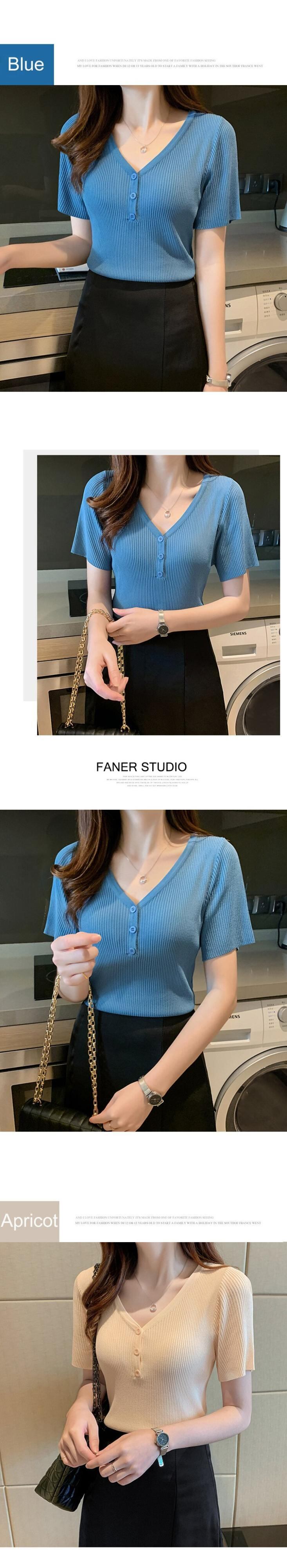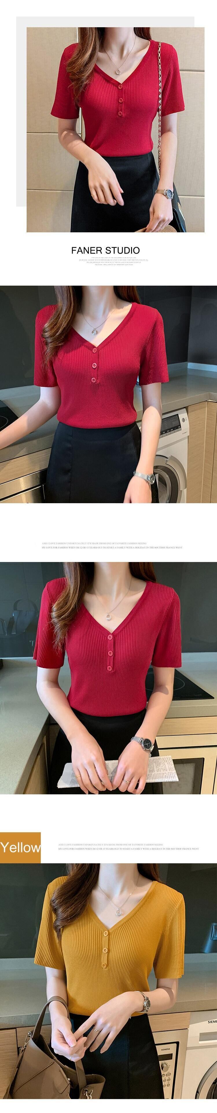 2019 夏 無地 ニット ボタン 薄手 レディース Tシャツ オフィスレディ Vネック 半袖 ルーズトップ アプリコットレッド T96503X ショート ハーフスリーブ サマー 夏物 ソリッドカラー 会社 学校 通勤や通学にも bel56518960687 | aliel