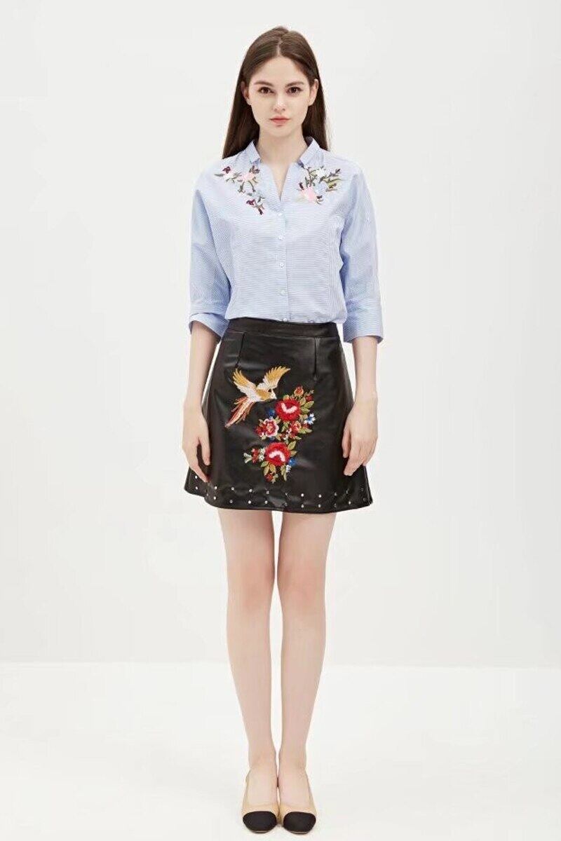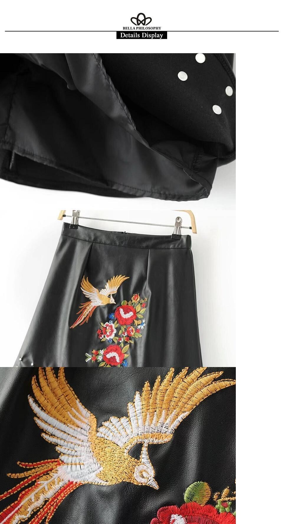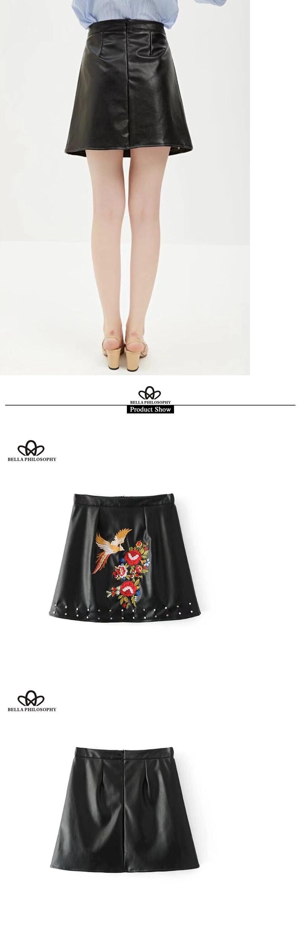 ベラ哲学 2018 女性秋冬新リベット鳥花刺繍 PU レザースカート オータム 秋物 ウィンター 冬物 フラワーデザイン bel52682343418