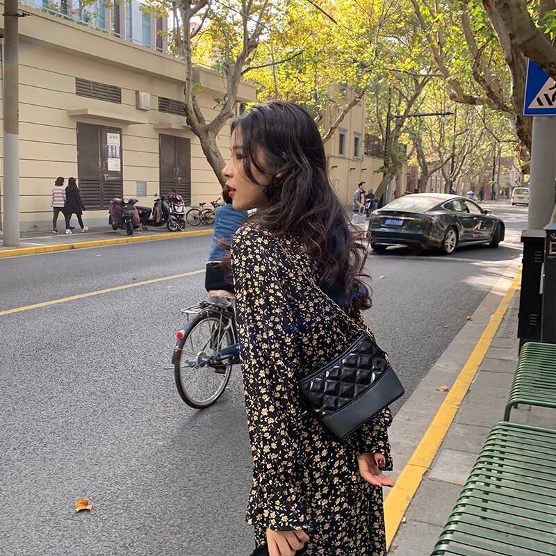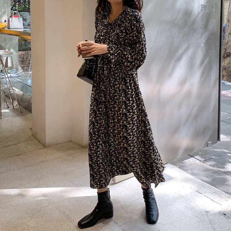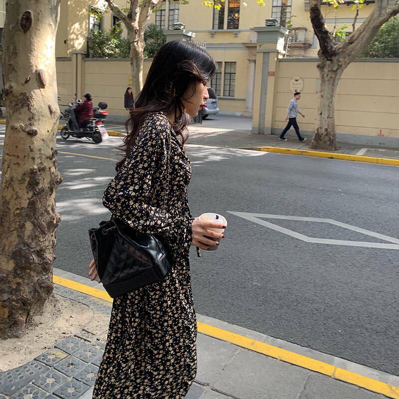 ベラ哲学 2020 春の女性のエレガントなプリントドレス女性 V ネックハイウエストドレス女性ヴィンテージフリル長袖 ハイウェスト ロング ラッフル スプリング 春物 Vネック bel10314355603 | aliel