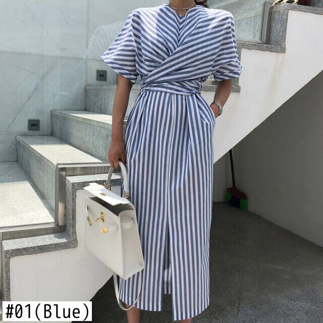 女性の夏のコットンブルーストライプ包帯スプリットロングドレスロングボディコンプラスサイズ Vestido ローブ Sukienki 大きめサイズ サマー 夏物 bel40315899286 | aliel