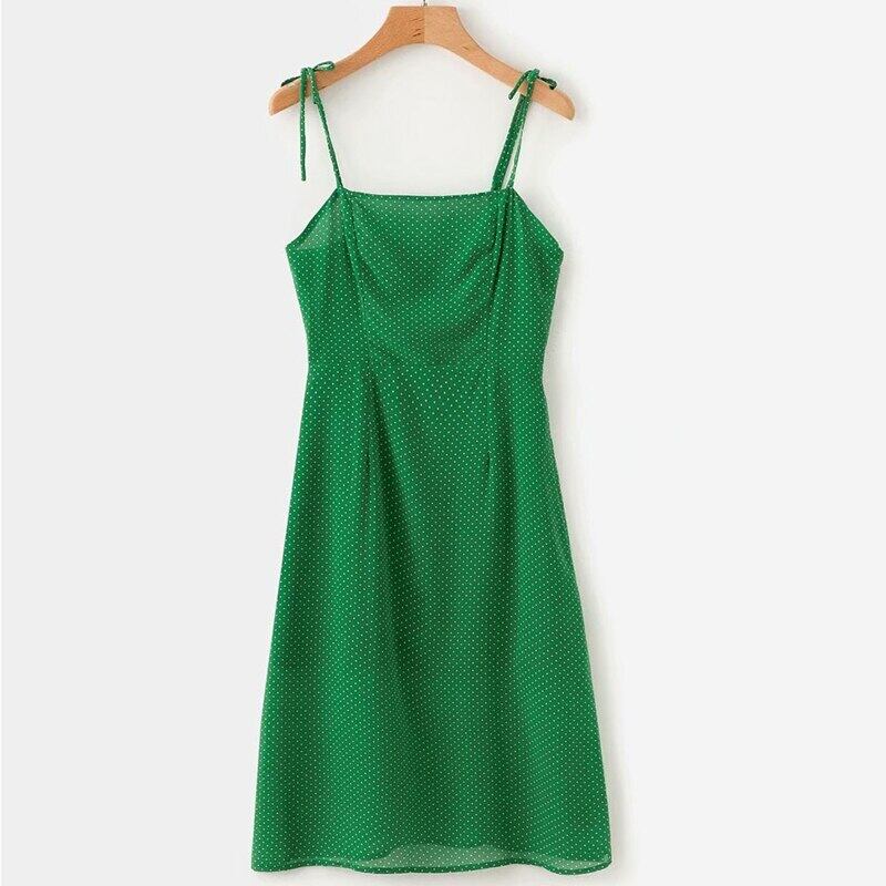 ベラ哲学夏女性ノースリーブヴィンテージドットドレスレディースセクシースパゲッティストラップドレスシフォングリーン女性ビーチドレス サマー 夏物 ビンテージ bel34132247032 | aliel