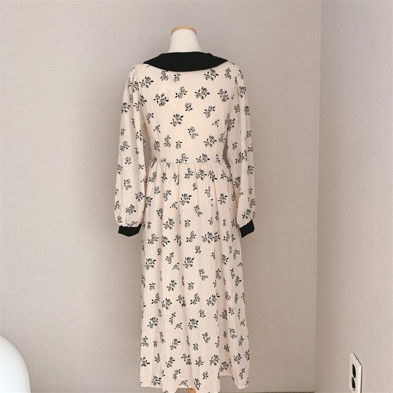 女性春ターンダウン襟長袖ドレスレディプリント A ライン V ネック t ウエストミディドレス Vestidos ロング スプリング 春物 Vネック Aライン bel80366270848 | aliel