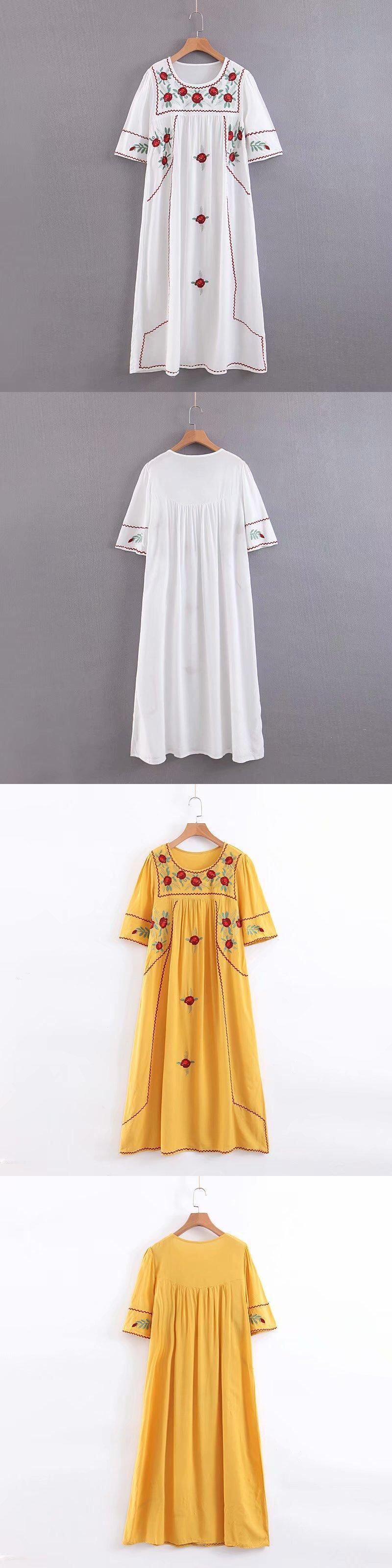 ベラ哲学女性半袖自由奔放に生きるドレス花刺繍ロングドレスエレガントな女性のシックな vestidos ホリデーパーティードレス ショート ハーフスリーブ 花柄 bel87179356544 | aliel