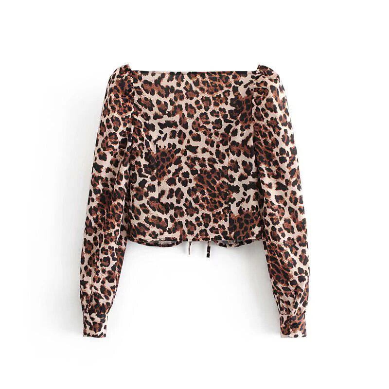 Bella Philosophy レースアップ 長袖 豹柄ブラウス アニマルプリント ブラウス スクエアカラー レディース ブラウス ショート トップス 2019 ロング スクウェア bel1790773785 | aliel