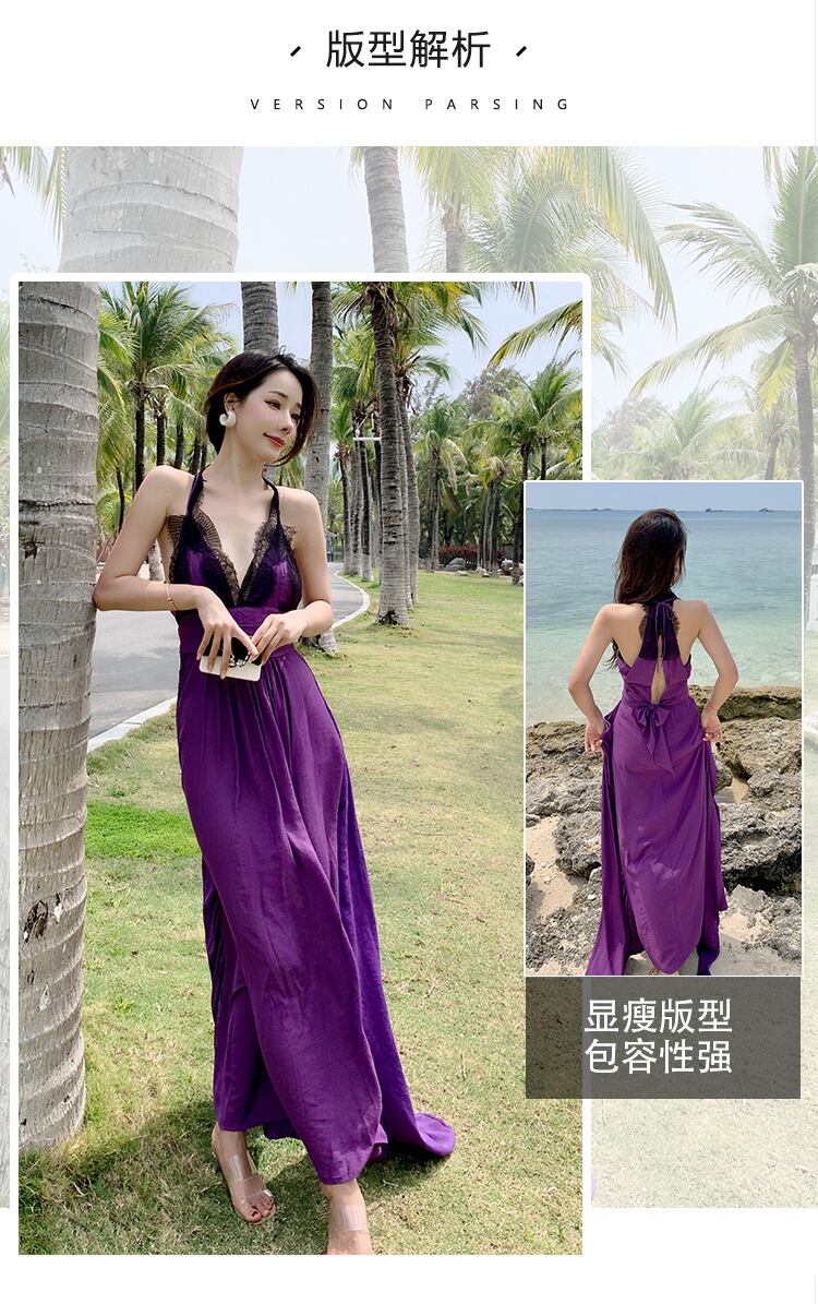 2022 パープル V ネックドレス夏レースオフショルダーレトロロングセクシーなスリムパーティーナイトドレス Traf ローブキャミドレス サマー 夏物 Vネック bel19974652482 | aliel