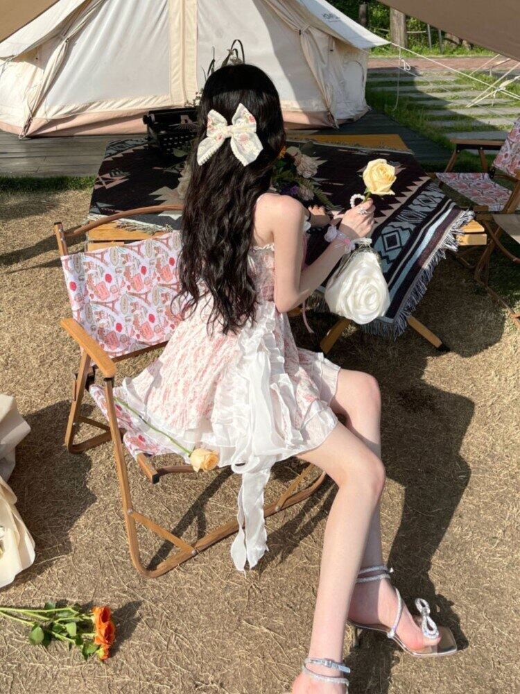 2022 ストラップフローラルドレス女性のセクシーなレースアップパーティードレスフレンチスタイルのプリント夏ビーチ自由奔放に生きるドレス サマー 夏物 花柄 bel73952470183 | aliel