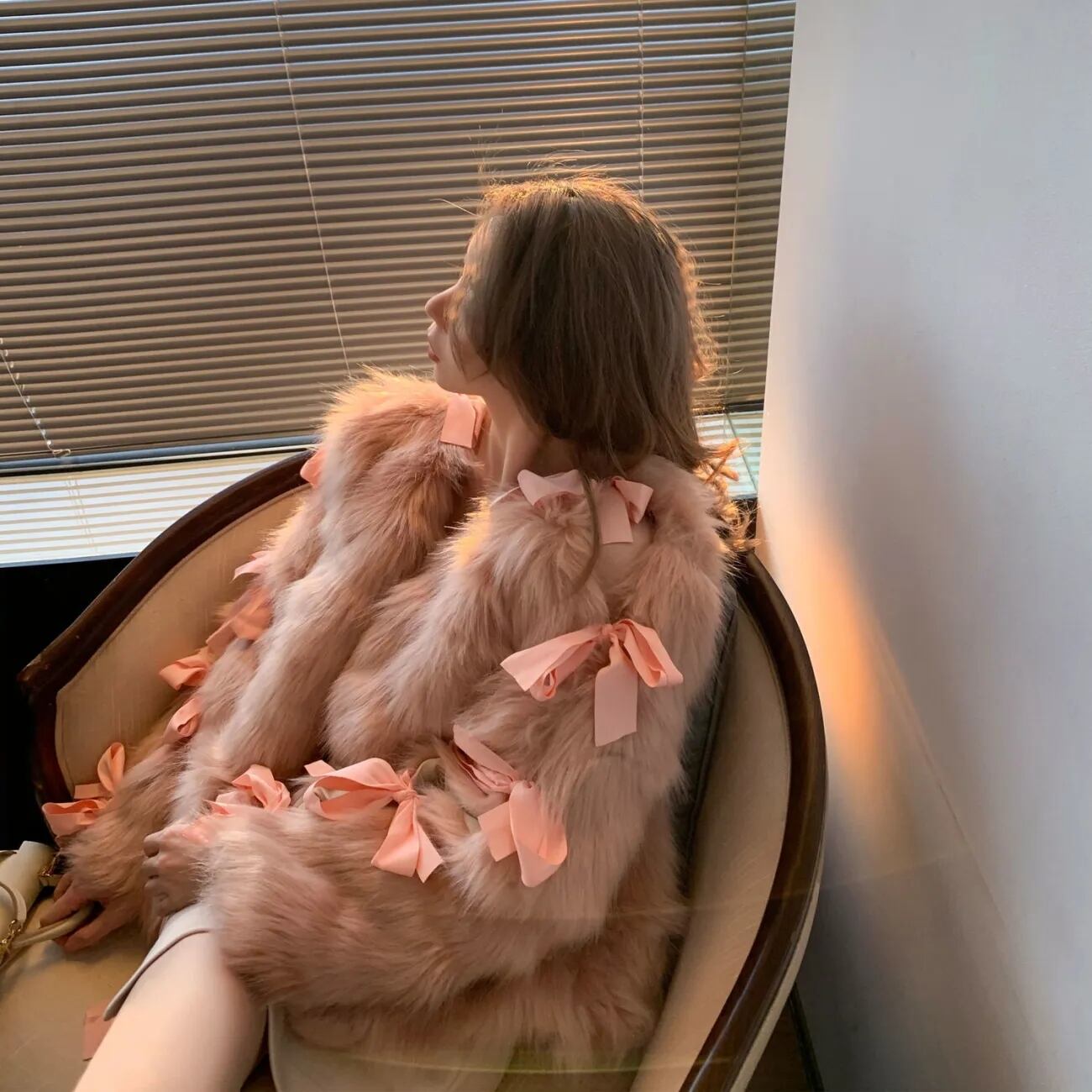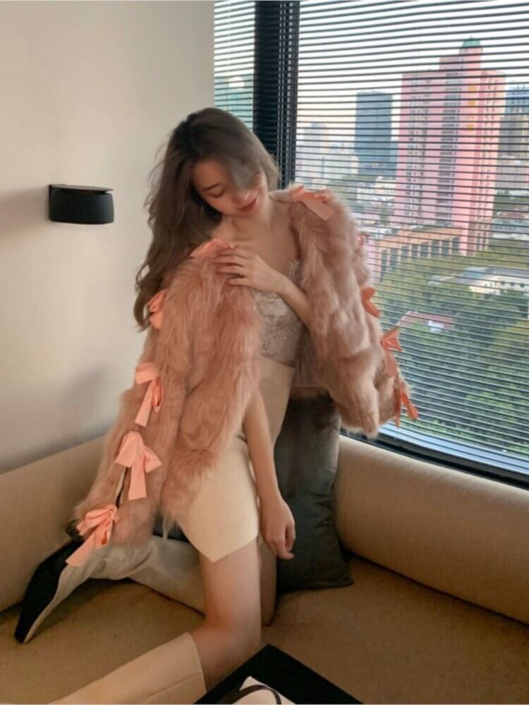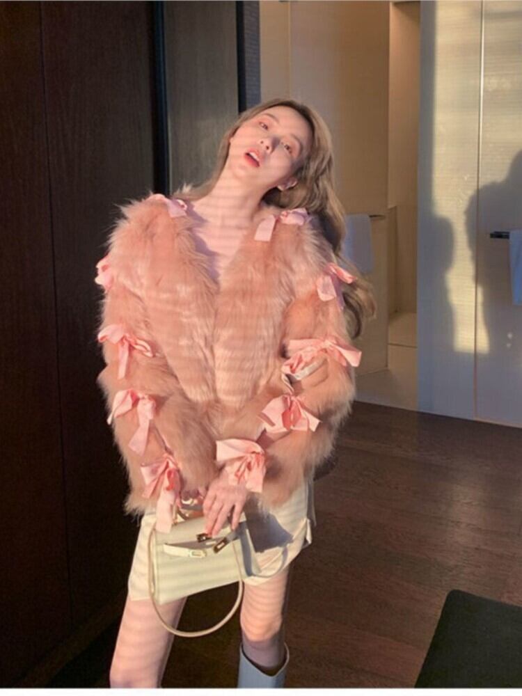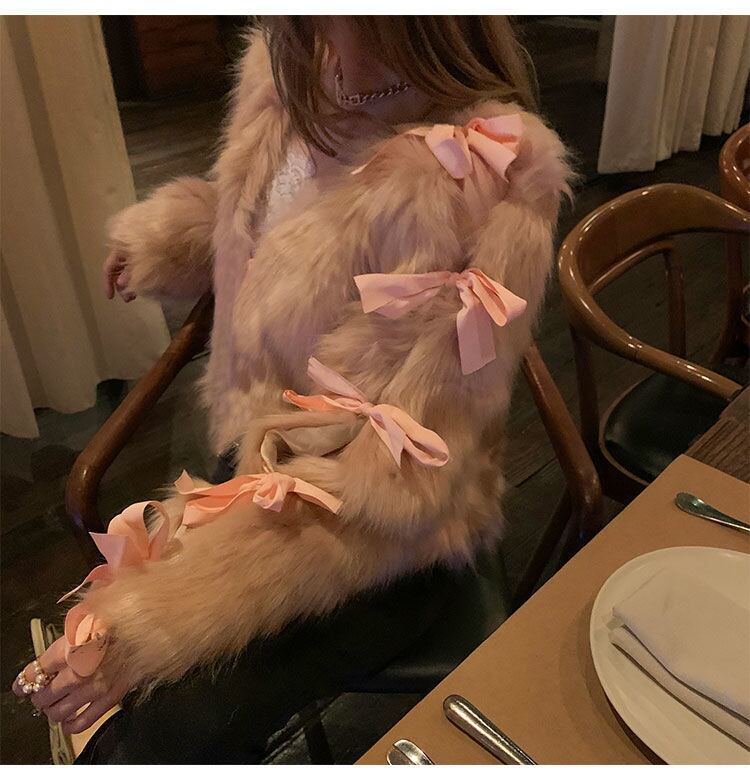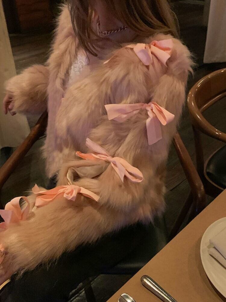 フェイクファーコート レディース 2022年秋冬 イミテーションフォックスファー ボウ ショートトップ 因果コート リボン オータム 秋物 ウィンター 冬物 bel87551242066 | aliel