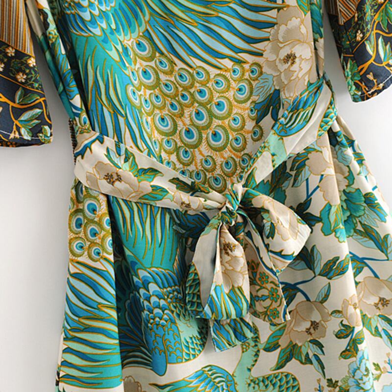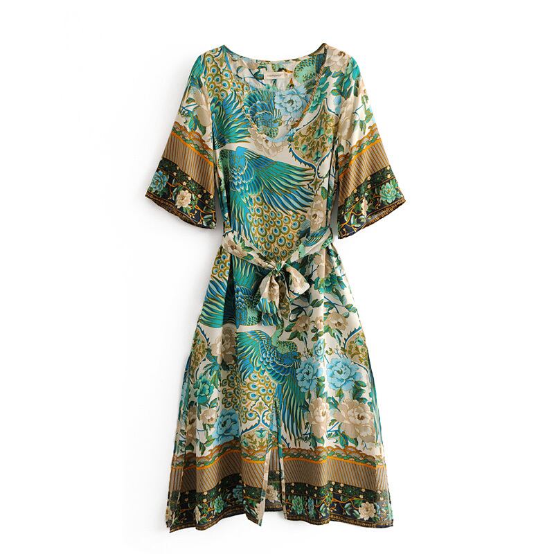ベラ哲学 2018 夏プリント孔雀の女性のドレス v ネックのセクシーな女性の vestidos サッシュ半袖レディースホリデードレス ハーフスリーブ サマー 夏物 Vネック bel92858113468 | aliel