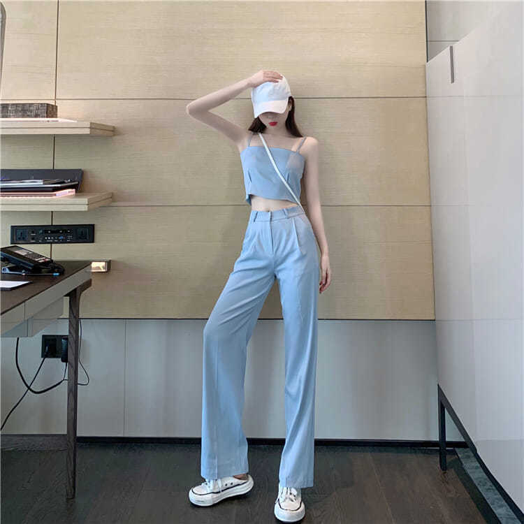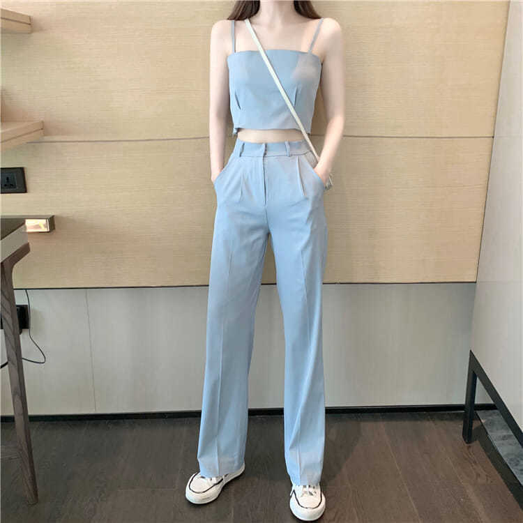 セクシーなツーピースセットトラックスーツ女性ノースリーブキャミソールトップとワイドレッグパンツ 2 ピースクラブマッチングセット Ropa スーツ ワイドパンツ bel54220636189 | aliel