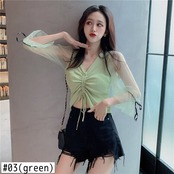 Bella Phiosophy 2020 春ソリッド V ネックショートパッチワークニットトップス女性巾着セクシーな Tシャツブラウス スプリング 春物 Vネック ソリッドカラー bel89291207546 | aliel