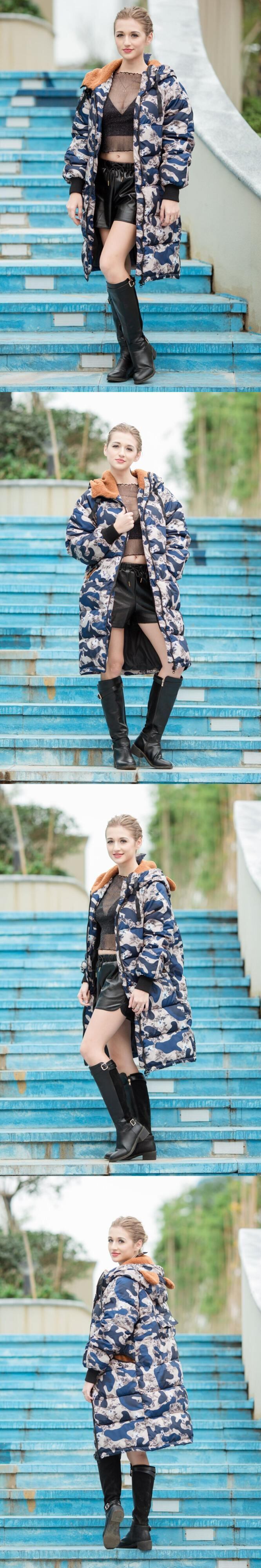 ベラ哲学冬パッド入りコート女性ロングパーカージャケット長袖生き抜くオーバーコートフード付き迷彩コート ウィンター 冬物 bel11983262355