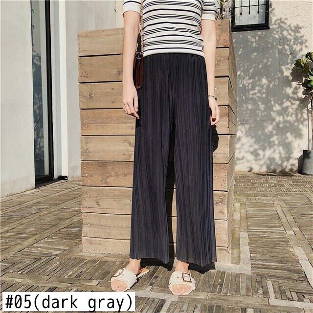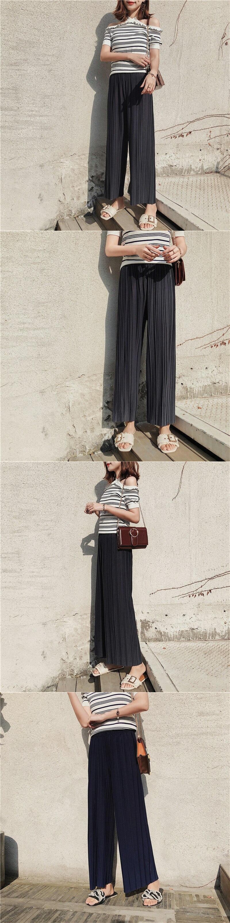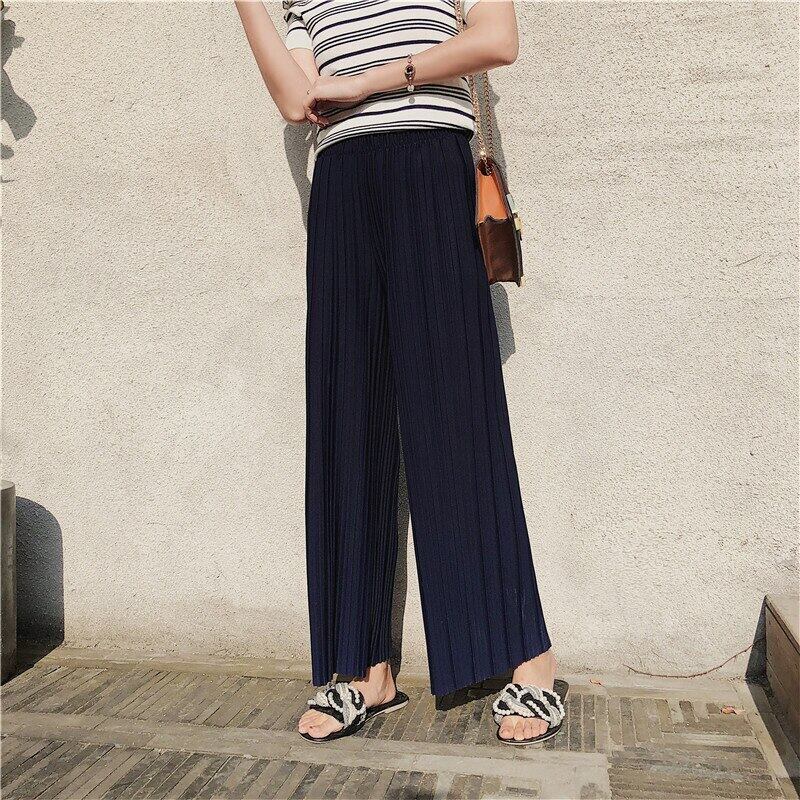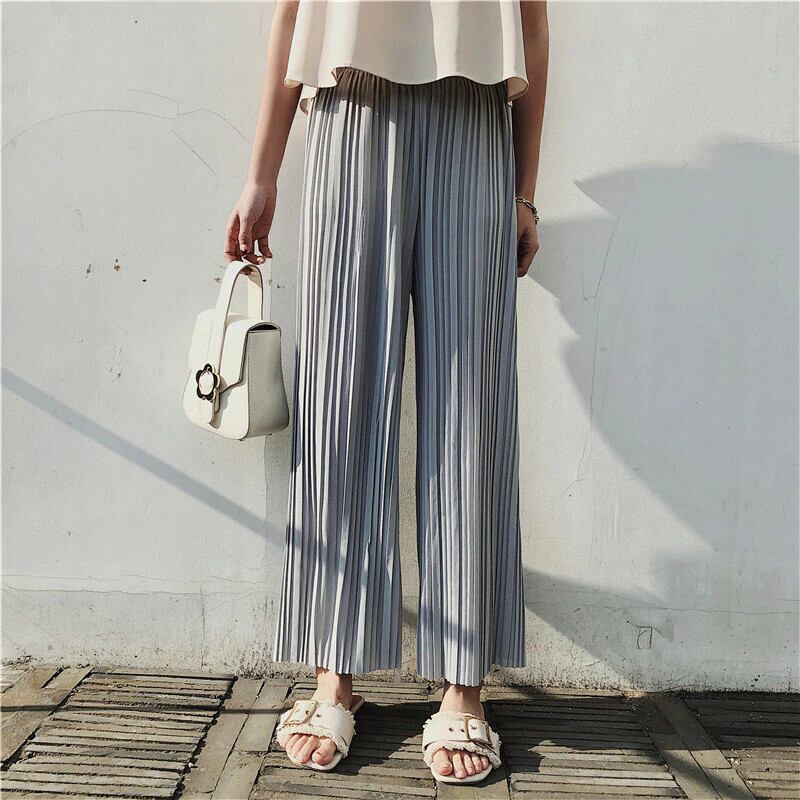 Bella Philosophy 夏 シフォン 無地 女性 カジュアル ワイドレッグ パンツ ルーズ プリーツ アンクル丈 パンツ ウエストゴム ボトムス パンツ エラスティック 伸縮 サマー 夏物 ワイドパンツ ソリッドカラー bel58628916090 | aliel