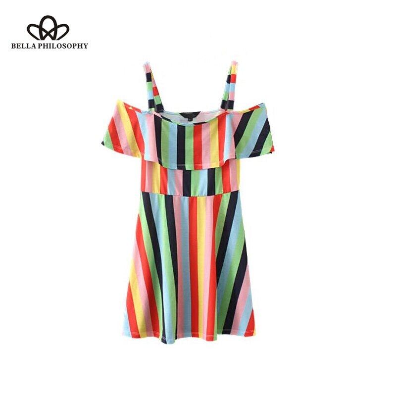 ベラ哲学セクシーなオフショルダーストライプシャツドレスフリルスパゲッティストラップ半袖女性カジュアルシックなドレスvestidos ショート ハーフスリーブ bel81341105139 | aliel
