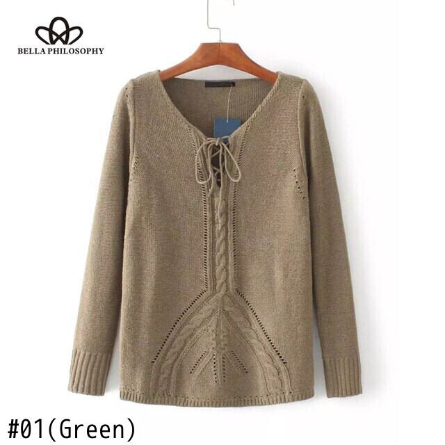 Bella Philosophy 秋冬 レースアップ ニット プルオーバー セーター ニット プルオーバー ゆったり 秋冬 ジャンパー プルオーバー オータム 秋物 ウィンター 冬物 bel58045332725 | aliel