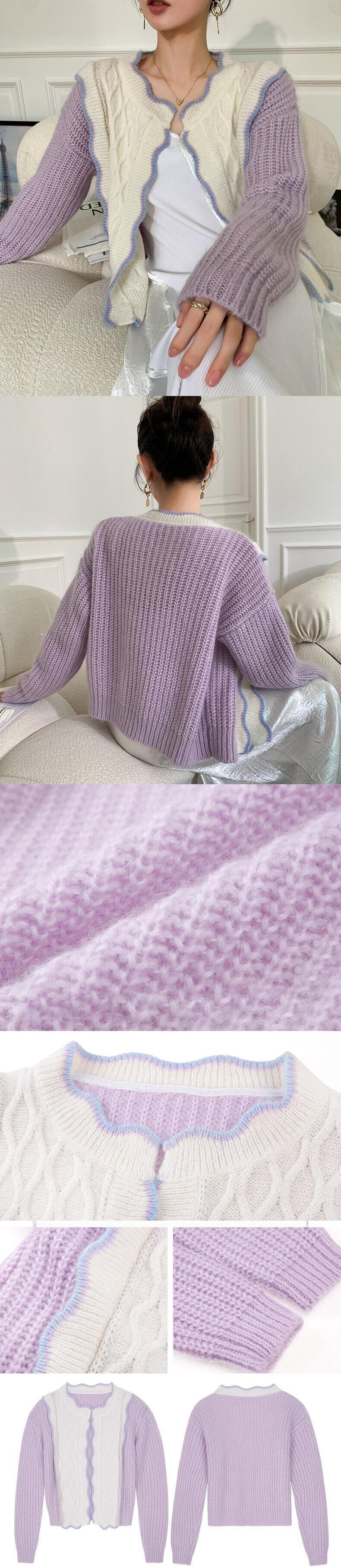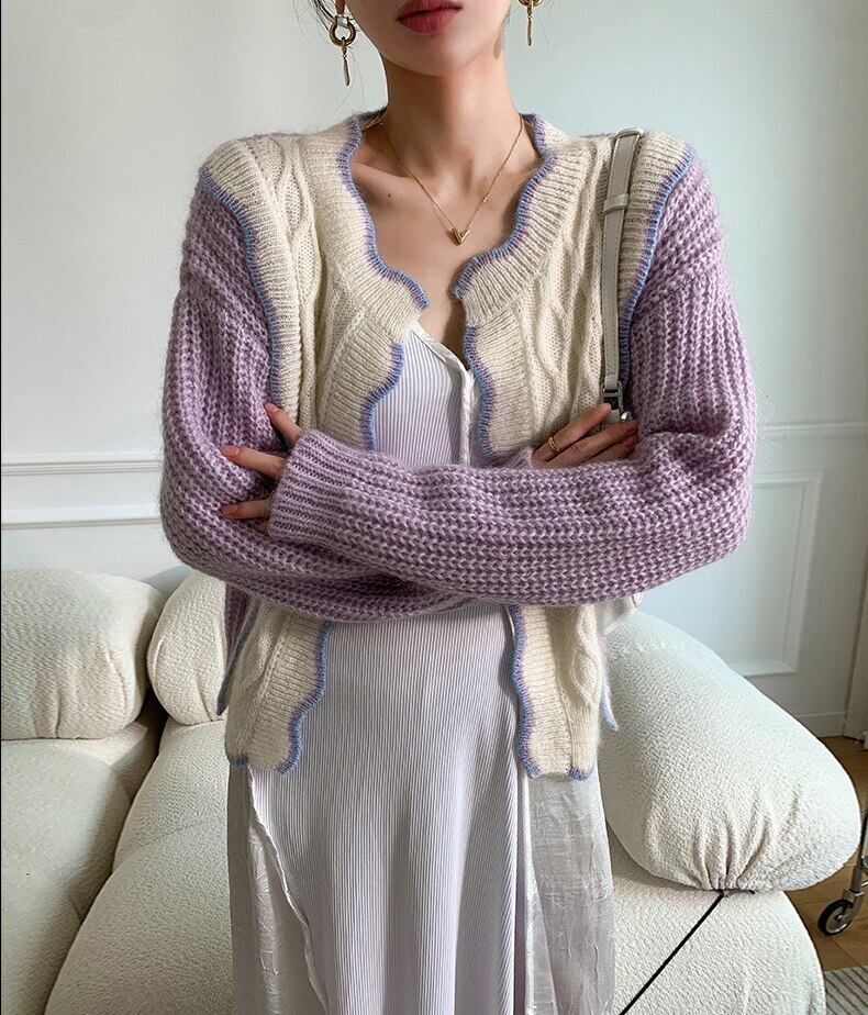 レディース秋ルーズフィットニットパープルカーディガンセーター長袖 V ネックオフィスレディアーガイルチェック柄トレーナートップ ロング オータム 秋物 Vネック 会社 学校 通勤や通学にも bel28732057386 | aliel