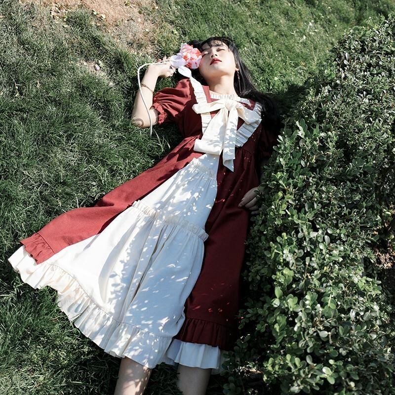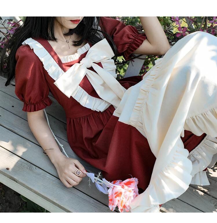 ese ロリータミディ女性ドレス夏 2021 フリルレトロかわいいパッチワークパフスリーブ甘いかわいいドレス 大人ガーリー スウィート キュート カジュアル サマー 夏物 bel17359919506 | aliel