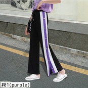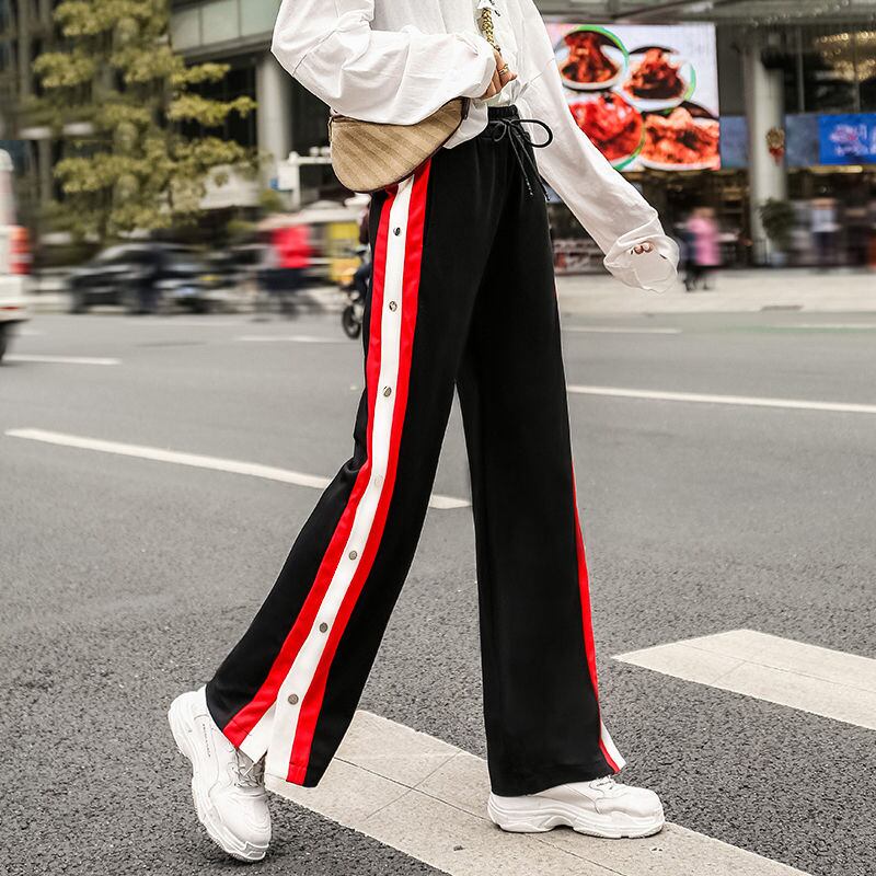 ベラ哲学 2020 春女性スプリットワイドレッグパンツ弾性ウエストサイドストライプ長ズボン春 ロング エラスティック 伸縮 スプリング 春物 ワイドパンツ bel50066682861 | aliel