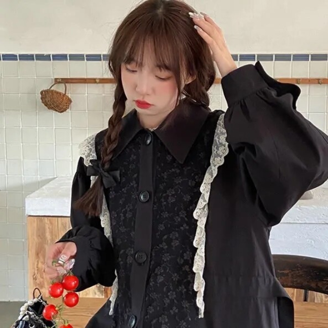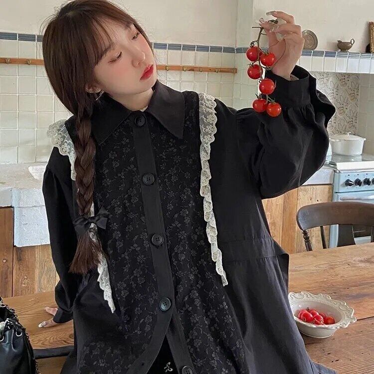 202 1women ブラック エレガント カジュアル ルーズ ドレス女性 cutr プレッピー スタイル長袖ドレス レディ シングル ブレスト vestido ロング bel97257348881 | aliel