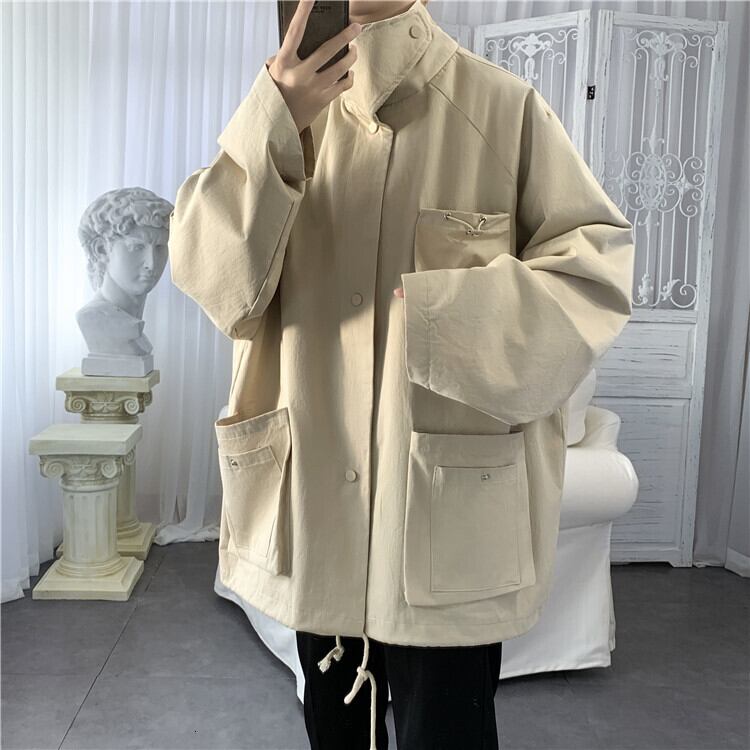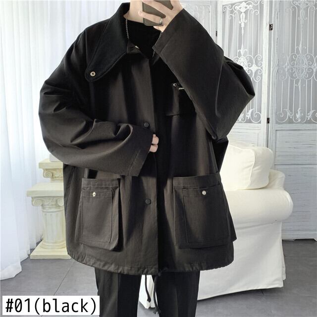 秋のツーリングジャケットメンズ無地マルチポケットジャケットストリートワイルドルーズヒップホップボンバージャケット オータム 秋物 ソリッドカラー ポケット多め bel48653026530 | aliel