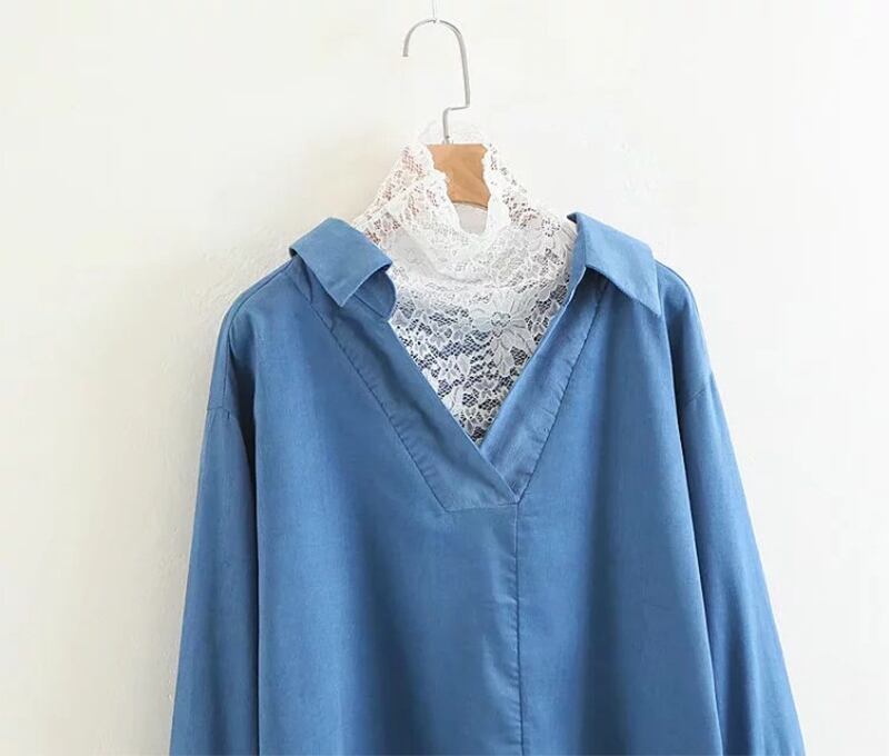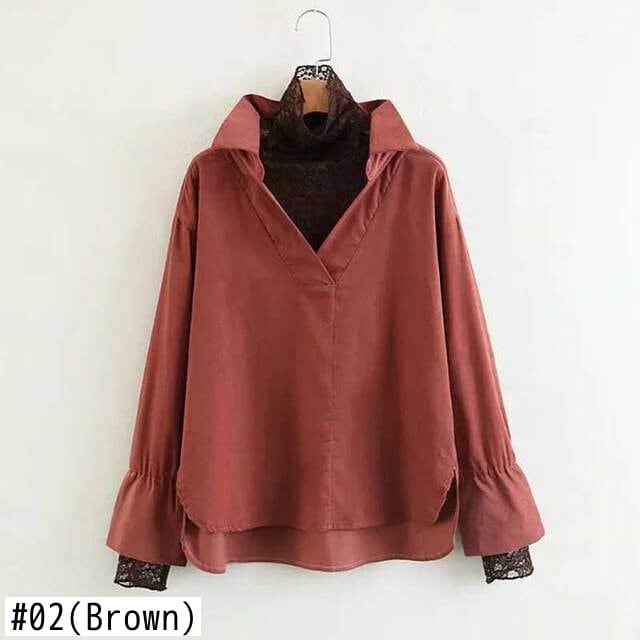 ベラ哲学 2018 女性春カジュアルレースパッチコットンブラウスフルスリーブ v ネックレディースシャツファッションコーデュロイ女性シャツ スプリング 春物 Vネック bel7760313509 | aliel