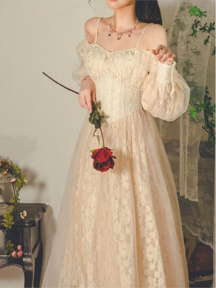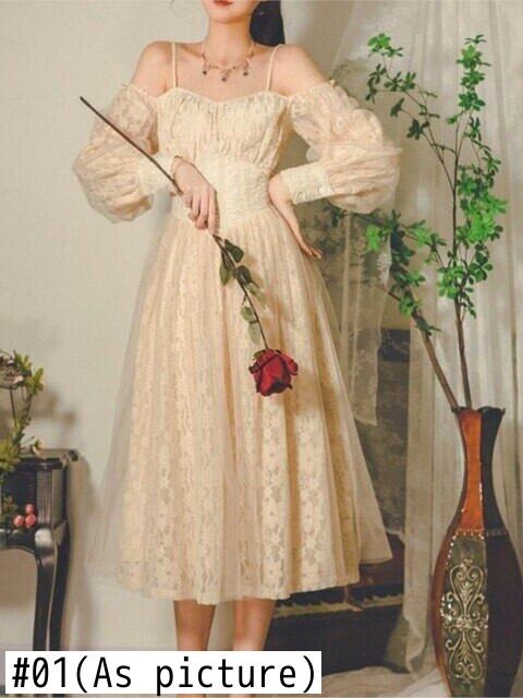 フランスの妖精のドレスの女性のレース刺繍イブニングパーティードレス 2022 春コートレトロミディドレス スプリング 春物 bel39817520021