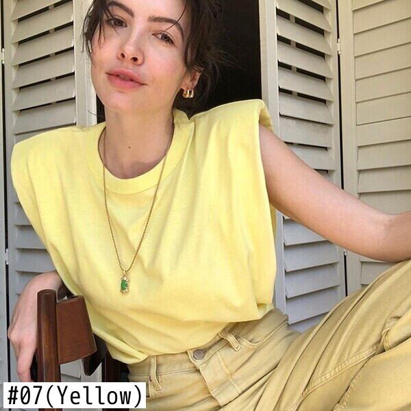 夏ノースリーブトップ O ネック白人女性ブラウスパッド入りショルダー Tシャツ緩い固体シックなブラウス筋肉 Tシャツタンク ホワイト サマー 夏物 Oネック ソリッドカラー bel47067903183 | aliel