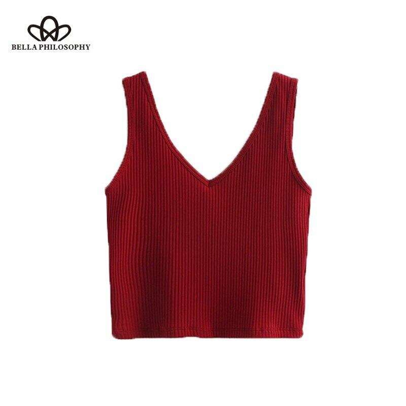 ベラ哲学 2018 秋冬カジュアル Tシャツキャミソールショートソリッド女性ファッションボトム Tシャツ女性ニット V ネックトップス オータム 秋物 ウィンター 冬物 Vネック ソリッドカラー bel50411724935 | aliel