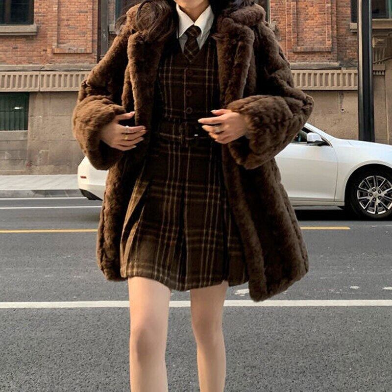 秋冬フェイクレックスのウサギの毛皮のベルベットのオーバーコート女性厚く暖かい生き抜くフード付きミッドレングスフェイクファーコート オータム 秋物 ウィンター 冬物 bel70752240488 | aliel