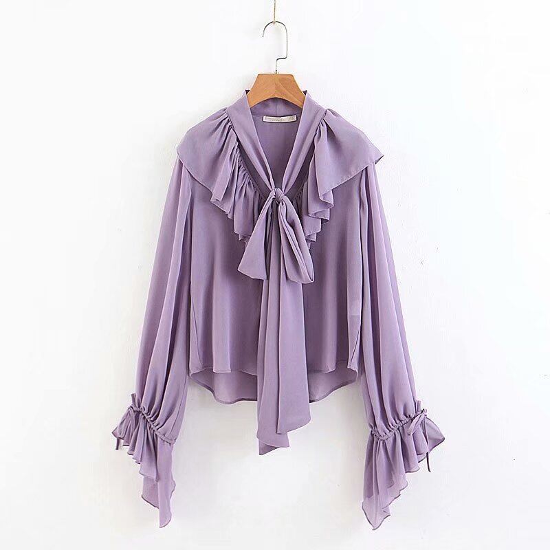 ベラ哲学 2019 夏の女性のエレガントな長袖フリルブラウスカジュアルシフォンランタンスリーブヴィンテージレディースシャツトップス ロング サマー 夏物 ビンテージ bel82623184509 | aliel