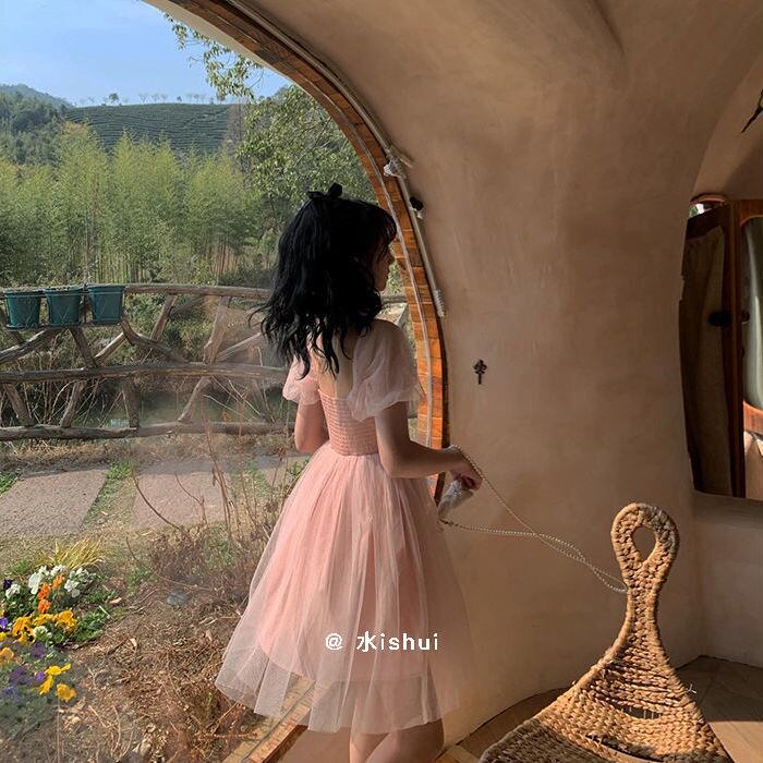 頤和園レトロドレス 半袖 スウィートガール ピンクメッシュドレス スーパーフェアリー刺繍ドレス ショート レース ハーフスリーブ 大人ガーリー キュート カジュアル サマー 夏物 bel7859996040 | aliel